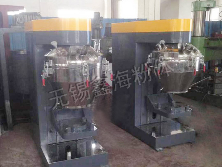 該混合機具有錐形混合腔體,并配有中心轉(zhuǎn)軸,通過轉(zhuǎn)軸的速度產(chǎn)生離心力將粉料推向混合腔體內(nèi)壁。此時腔體的錐形形狀使粉體產(chǎn)生一個沿內(nèi)壁向上的運動。粉體再由獨特的混合機蓋引導到混合機的中心,并回落到混合腔的底部,重新開始新一輪的混合過程。